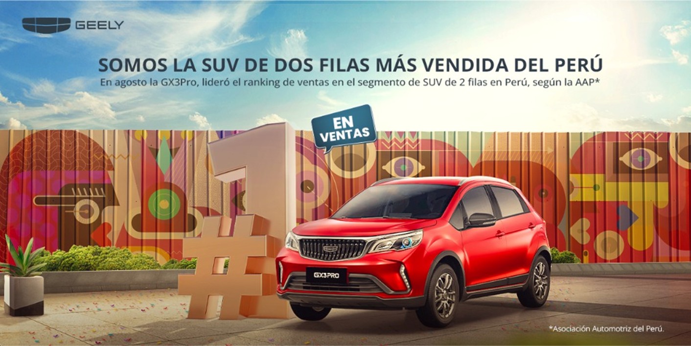 En agosto, la empresa automotriz premium de origen chino Geely lideró las ventas del segmento SUV de dos filas en el mercado peruano, con la comercialización de su modelo Gx3Pro, según la Asociación Automotriz del Perú (AAP). La GX3PRO está a...