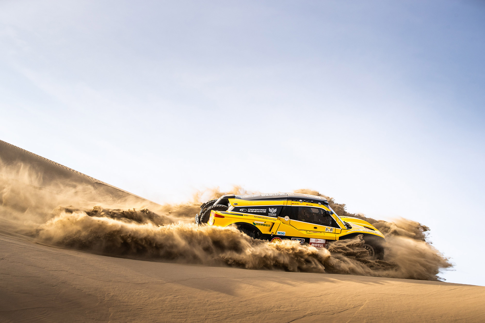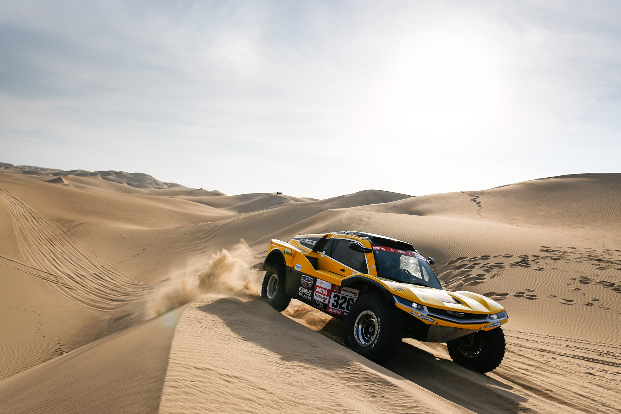 Los dos vehículos SMG Buggy de Geely están liderados por Han Wein (China) y Philippe Gache (Francia) con sus respectivos pilotos Liao Wei y Stephane Prevot. Ellos conducen por primera vez en el Dakar un vehículo impulsado con Metanol, un tipo de combustible que tiene menores emisiones de Dióxido de de Carbono comparado a otros combustibles.