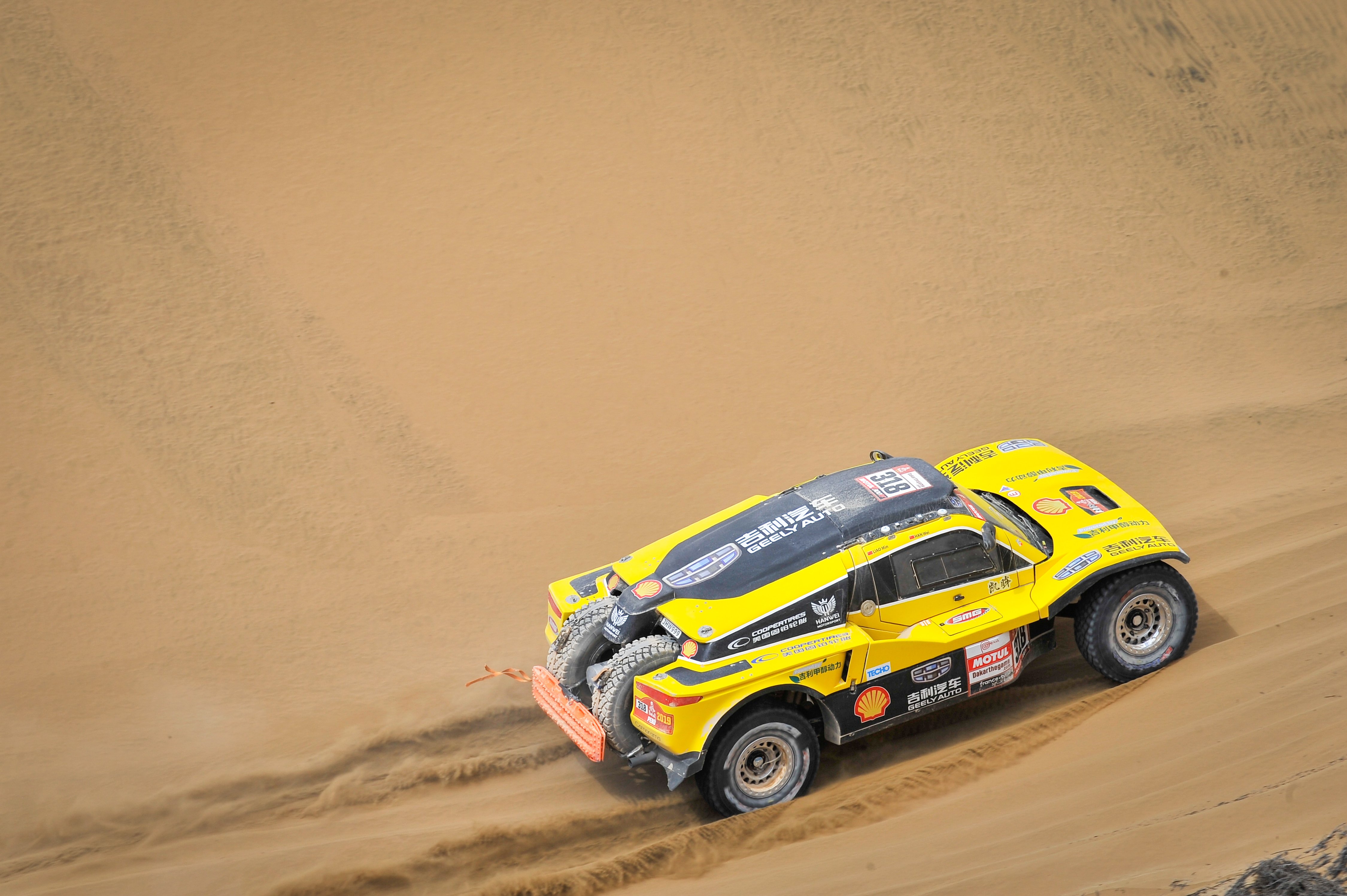 Los dos vehículos SMG Buggy de Geely están liderados por Han Wein (China) y Philippe Gache (Francia) con sus respectivos pilotos Liao Wei y Stephane Prevot. Ellos conducen por primera vez en el Dakar un vehículo impulsado con Metanol, un tipo de combustible que tiene menores emisiones de Dióxido de de Carbono comparado a otros combustibles.