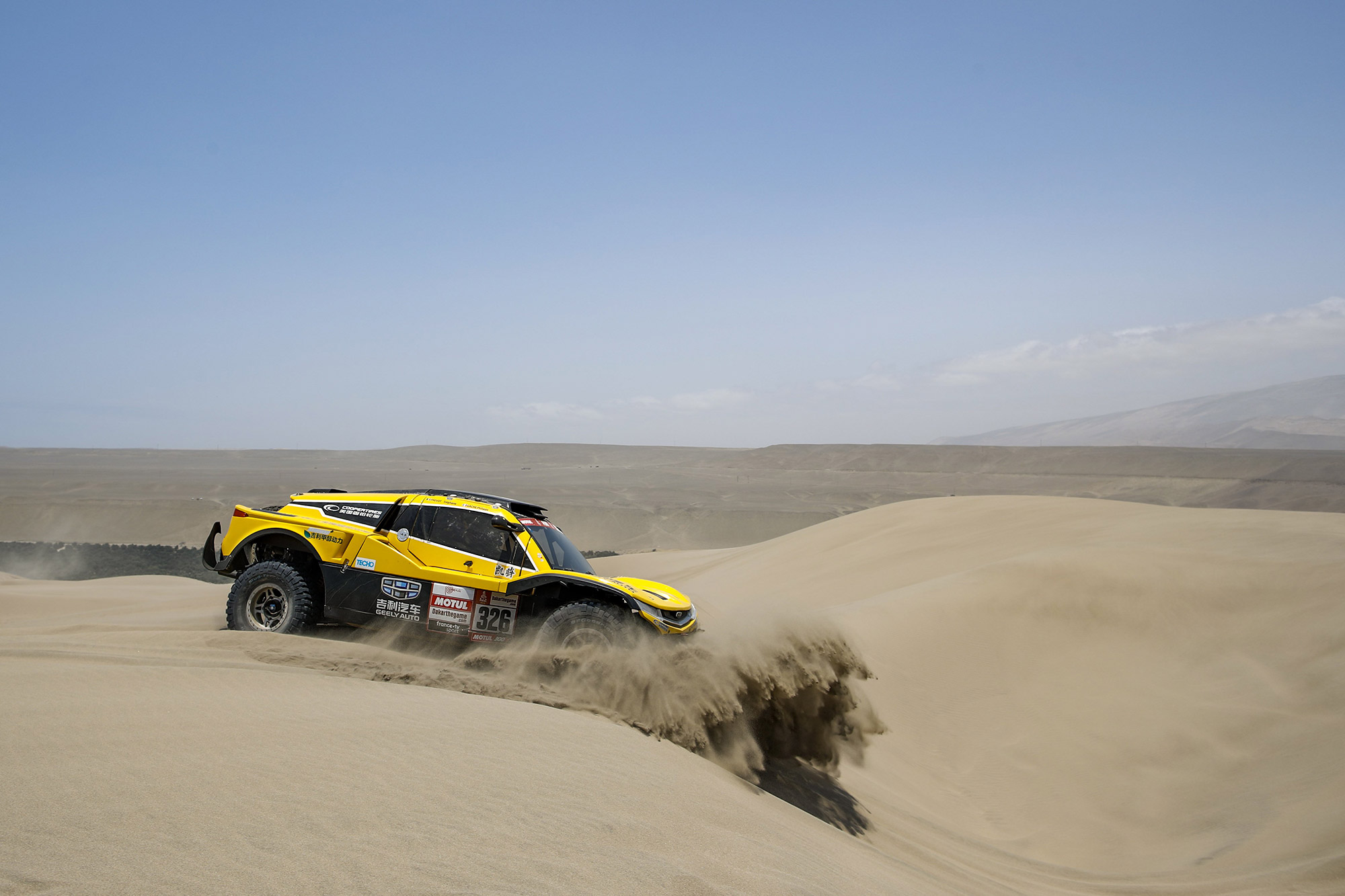 Los dos vehículos SMG Buggy de Geely están liderados por Han Wein (China) y Philippe Gache (Francia) con sus respectivos pilotos Liao Wei y Stephane Prevot. Ellos conducen por primera vez en el Dakar un vehículo impulsado con Metanol, un tipo de combustible que tiene menores emisiones de Dióxido de de Carbono comparado a otros combustibles.